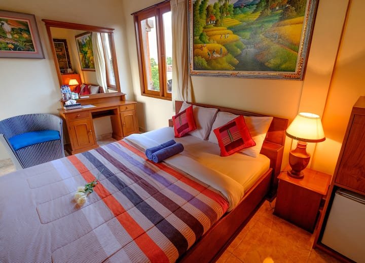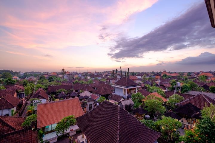 Two Full Private Rooms on the 3rd floor with romantic view waiting for you, quiet, simple and relaxed place with garden and aquarium with big orange and white koi fishes. Look at big sunsets on other balcony and drink chinese tea and balinese coffee.